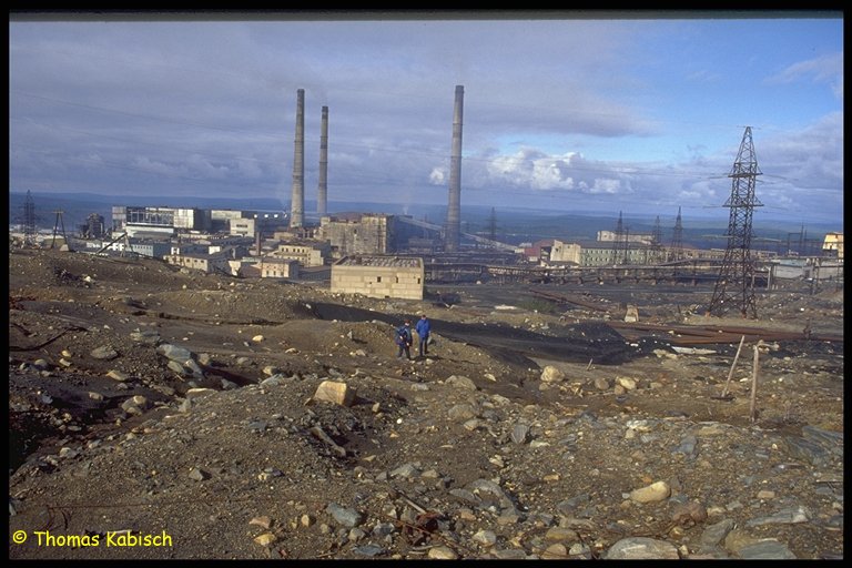 Blick auf das Nikelwerk. Im Hintergrund: Norwegen.