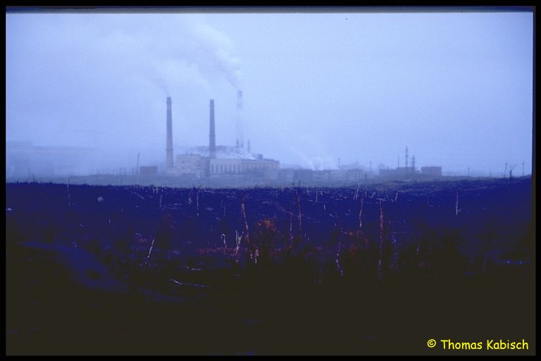 trostlose Siedlung. Kein Vergleich mit Kirowsk. Das trübe Wetter tut