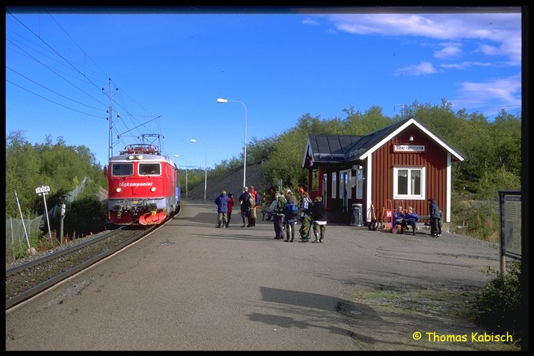 Der Nachmittagszug nach Narvik. Heute ist die knallrot lackierte Rc6-1 von